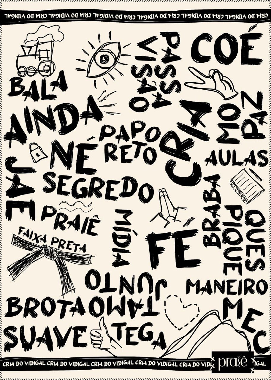 A estampa da Canga De Cria foi desenvolvida através de algumas gírias muito utilizadas no Vidigal! Trazendo uma estética única, com muita representatividade e identificação. Se você é cria, impossivél não amar essa canga.